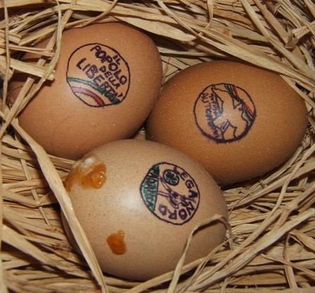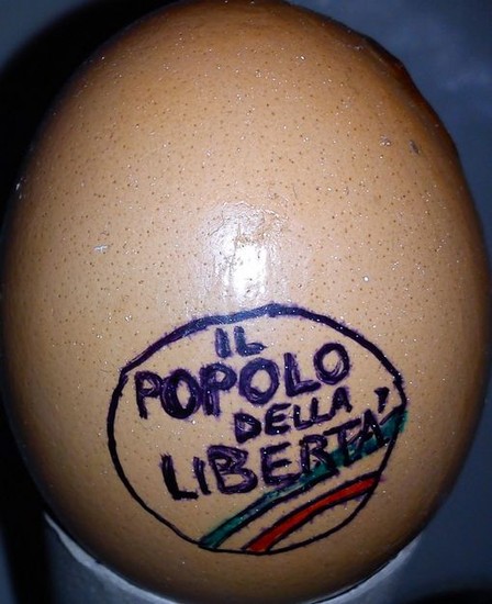 trasparente, sull'uovo della Lega Nord. Pur con qualche crosticino, l'uovo pare resistere.