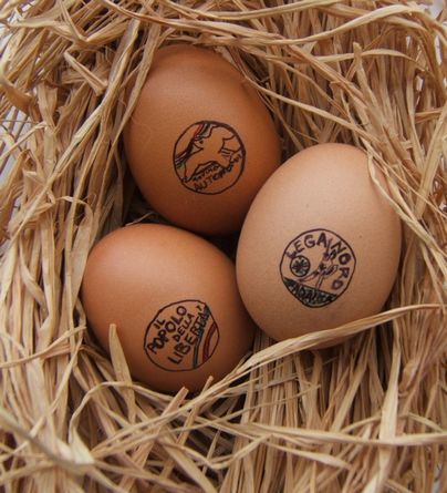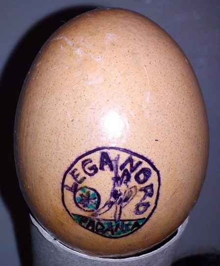 con i rispettivi loghi, sul guscio di tre uova che in data 02 febbraio vedevano la loro naturale scadenza ai sensi