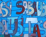 Realizzata su "POLIONDA", materiale plastico di dimensioni 50 x 50 cm per 2,5 mm di spessore, quest' opera intitolata UNA MASSA DI LINEE SU PLASTICA BLU dice tutto sulla rappresentazione delle undici frasi ottenute dalla interpretazione calalinguistica, ovvero anagramma, del testo appena citato. Ecco le frasi, all'insegna della libertà di parole che sprigionano, ed ecco l'opera riprodotta fotograficamente.